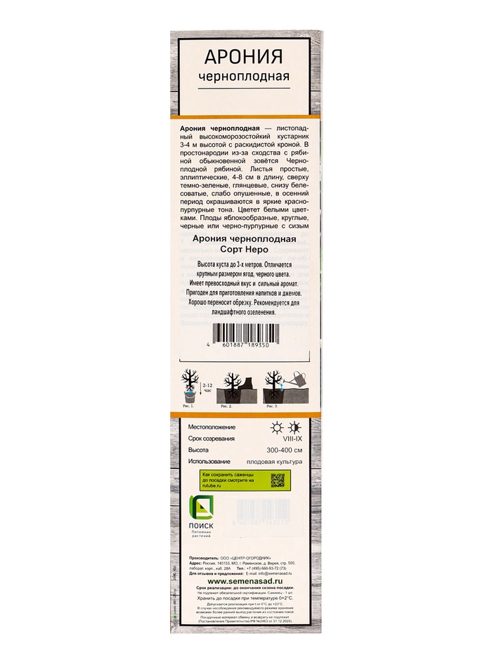 Невероятно красивый поздний сорт черноплодной рябины шведской селекции Хугин. Растёт невысоким многоствольным кустом высотой до 2м с характерной округлой кроной. Цветёт в июне, позднее всех черноплодок, пышными белоснежными соцветиями. Отличный медонос. Тёмно-зелёные глянцевые листья к осени становятся огненно-алыми. Урожай созревает в сентябре. Ягоды крупные (диаметром до 1,2см), глянцевые, карминно-чёрные, сочные. Вкус пряно-сладкий, с лёгкой рябиновой терпкостью.