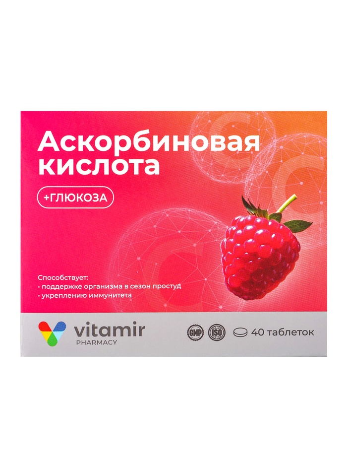 Аскорбиновая кислота с глюкозой, малина «Витамир» TETRALAB — витаминный комплекс для поддержания иммунитета, повышения энергии и укрепления общего здоровья. Препарат сочетает витамин C с глюкозой и натуральным малиновым вкусом, обеспечивая приятный приём и быстрый эффект.