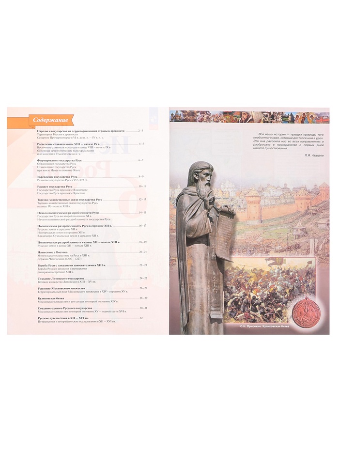 Атлас является составной частью УМК по истории России и представляет собой современное учебное иллюстрированное картографическое издание. Каждый тематический разворот атласа содержит комплекс взаимосвязанных информационно-методических материалов (основные и дополнительные карты, объемные схемы, иллюстрации и прочее ), освещающих одну тему и обеспечивающих комплексный подход к подаче информации. Атлас может быть использован с любым из действующих учебников по истории для 6 класса.