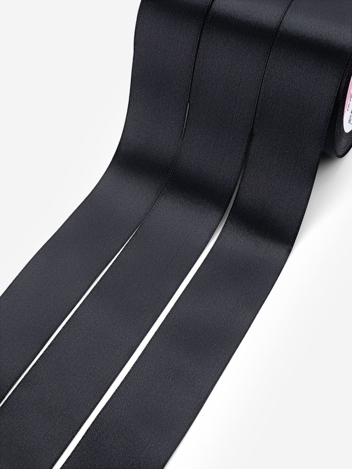 - Набор включает 3 однотонных атласных ленты черного цвета.