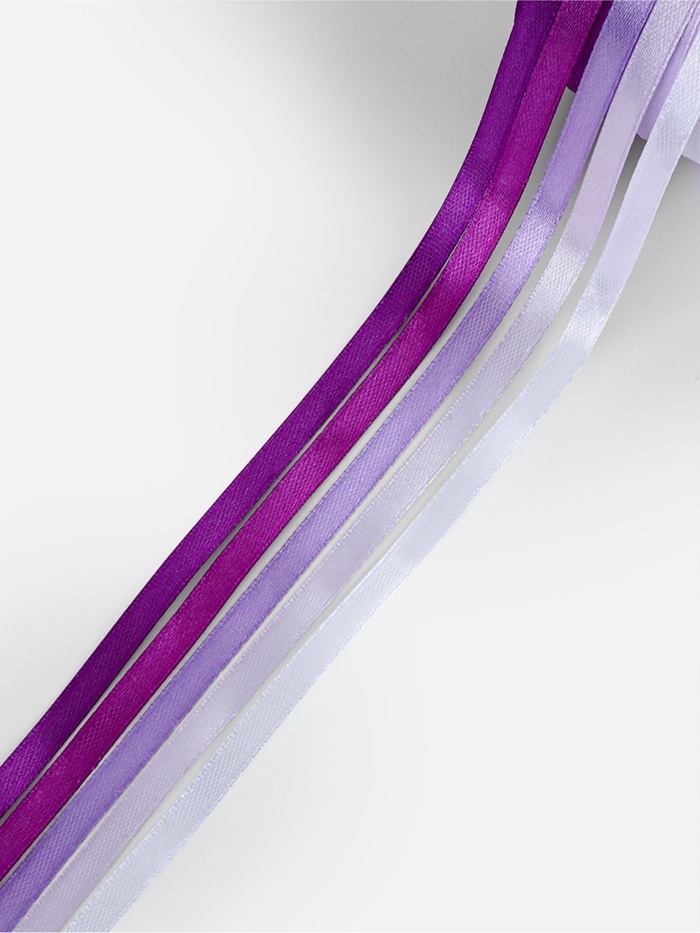 Этот набор однотонных атласных лент — отличный выбор для тех, кто занимается рукоделием, декором и созданием украшений. В комплект входят пять лент шириной 6 мм и длиной около 23 метров каждая, выполненных из качественного полиэстера с гладкой атласной поверхностью. Их насыщенный фиолетовый цвет с сиреневым оттенком добавит яркости и элегантности в любые творческие проекты.