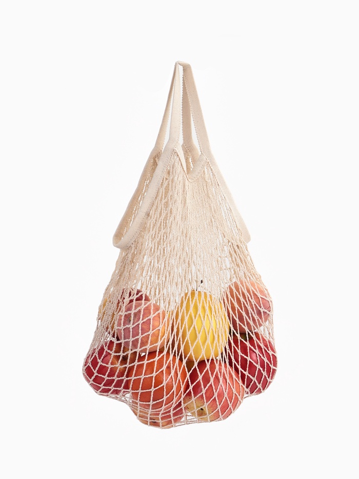 Сетчатые сумки из хлопка, произведенного с заботой о людях и природе, позволят вам обходиться без одноразовых пластиковых пакетов, а значит, уменьшить воздействие на климат. Кроме того, в таких сумках можно хранить фрукты и овощи.