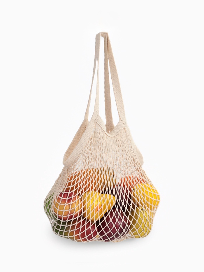 Сетчатые сумки из хлопка, произведенного с заботой о людях и природе, позволят вам обходиться без одноразовых пластиковых пакетов, а значит, уменьшить воздействие на климат. Кроме того, в таких сумках можно хранить фрукты и овощи.
