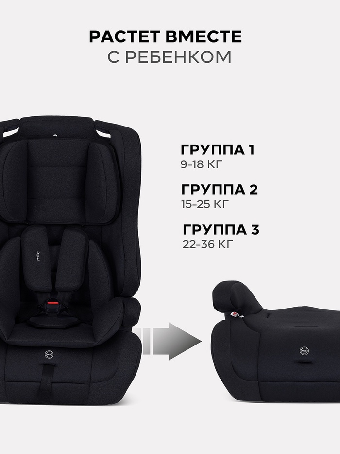 Автокресло RANT basic HD-02 Mile (Black) группа 1-2-3 (9-36 кг), черный