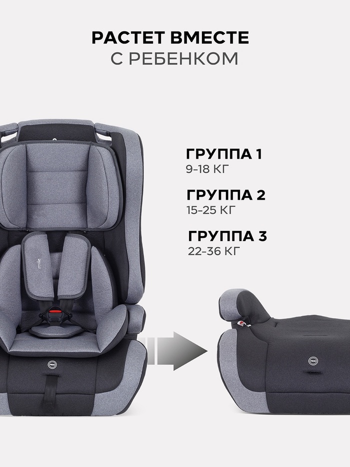Автокресло RANT basic HD-02 Mile (Grey) группа 1-2-3 (9-36 кг), серый