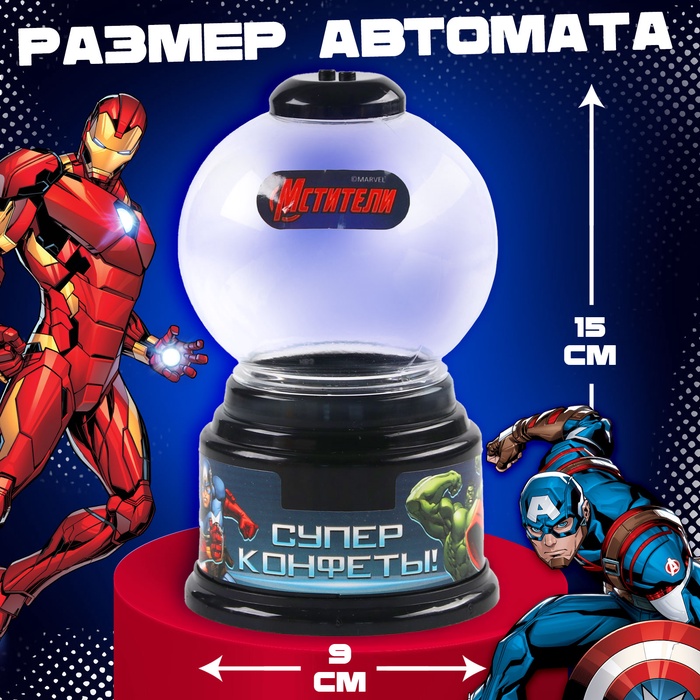 Автомат для конфет «Мстители» — это уменьшенная копия настоящей машинки для выдачи сладостей.