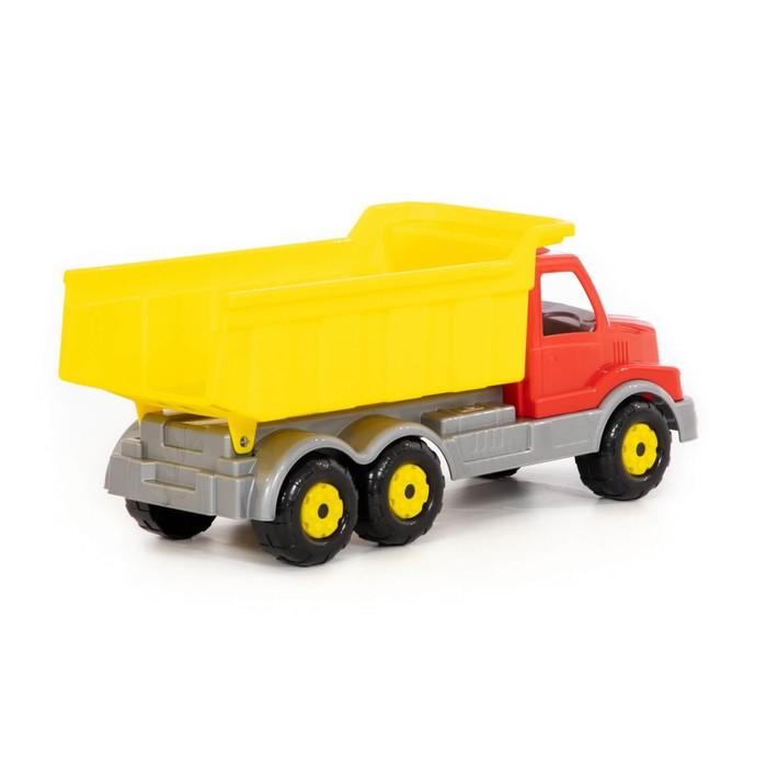 Самосвал — самая популярная игрушка среди мальчиков. Конструкция игрушки выполнена из высококачественного прочного пластика, а также лишена острых углов. Она оснащена вместительным откидным кузовом, в который можно засыпать песок или камушки.