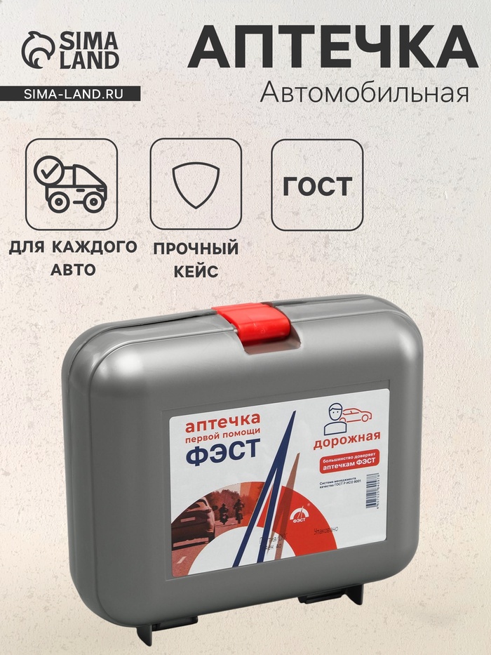 Эта аптечка предназначена для оказания первой медицинской помощи водителям и пассажирам в дорожных условиях. Компактный и прочный пластиковый футляр серого цвета обеспечивает сохранность содержимого и удобство хранения в автомобиле. Аптечка соответствует стандартам ГОСТ РФ, что гарантирует её качество и надёжность. :contentReference[oaicite:0]{index=0}