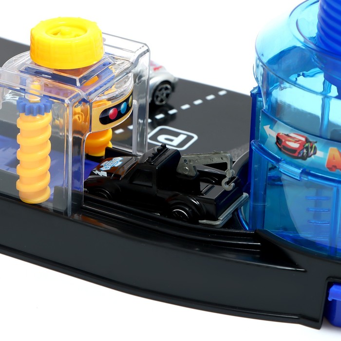Когда машина доберётся до завершающей стадии, закрываем её под куполом и нажимаем на помпу, чтобы вода полилась. Чистая игрушка готова к новому заезду!