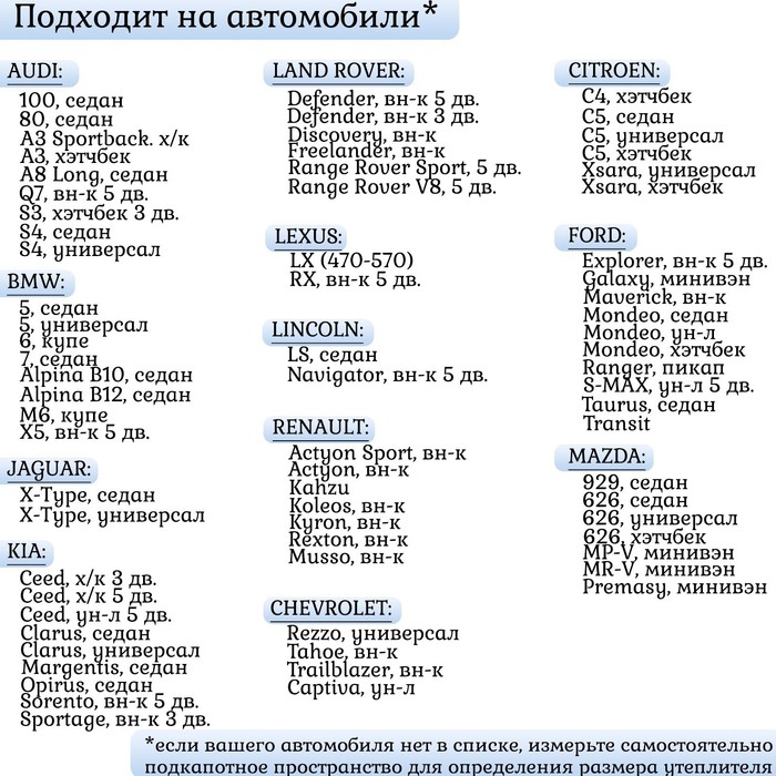 Автоодеяло TORSO предназначено для утепления двигателя внутреннего сгорания и агрегатов в моторном отсеке при отрицательной температуре воздуха. Оно снижает скорость остывания ДВС, тем самым уменьшаются затраты на прогрев двигателя до рабочей температуры и экономится расход топлива до 25 % при правильной эксплуатации. Также данное изделие помогает исключить возможность работы мотора в переохлаждённом состоянии. Использование автоодеяла более эффективно по сравнению с утеплителем капота, а материал, из которого оно изготовлено, обладает высокой стойкостью к износу. В случае возникновения возгорания можно использовать как противопожарное полотнище.