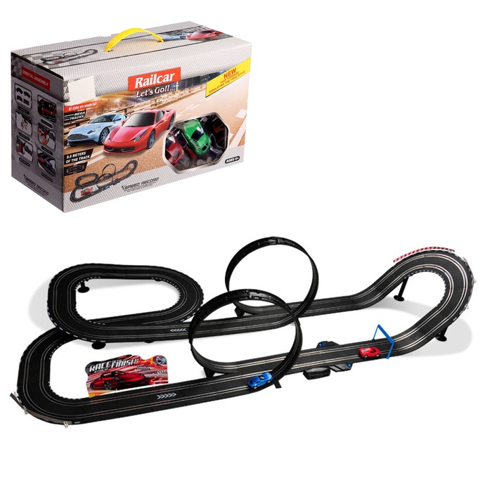 С автотреком «Гонки на суперкарах» ребёнок постоит 2-уровневую трассу с двумя мёртвыми петлями, крутыми подъёмами и спусками и устроит зрелищные заезды на скорость! Две машинки и пульты управления помогут сделать игру эффектнее и реалистичнее.