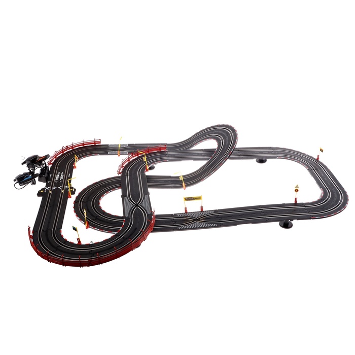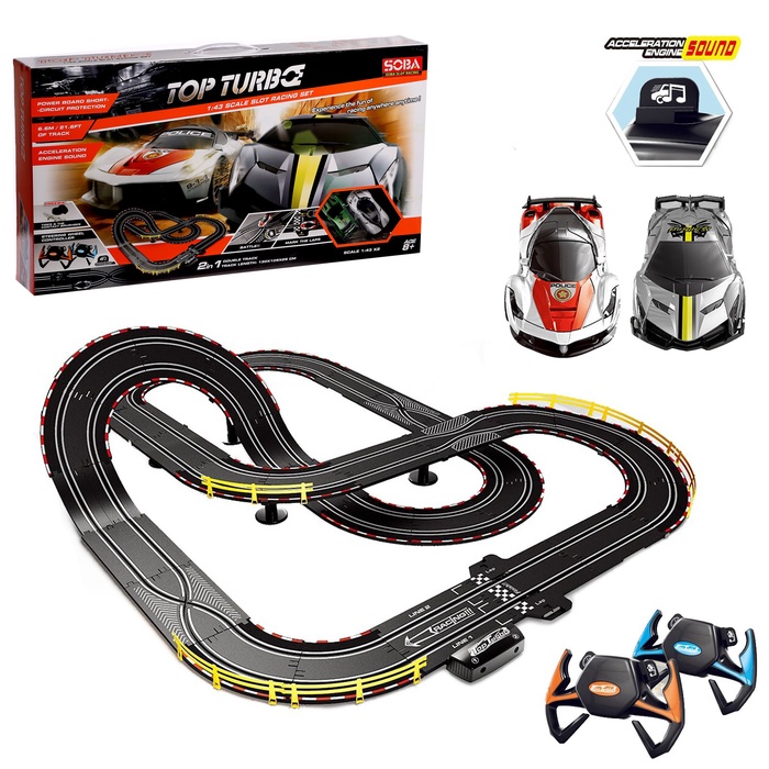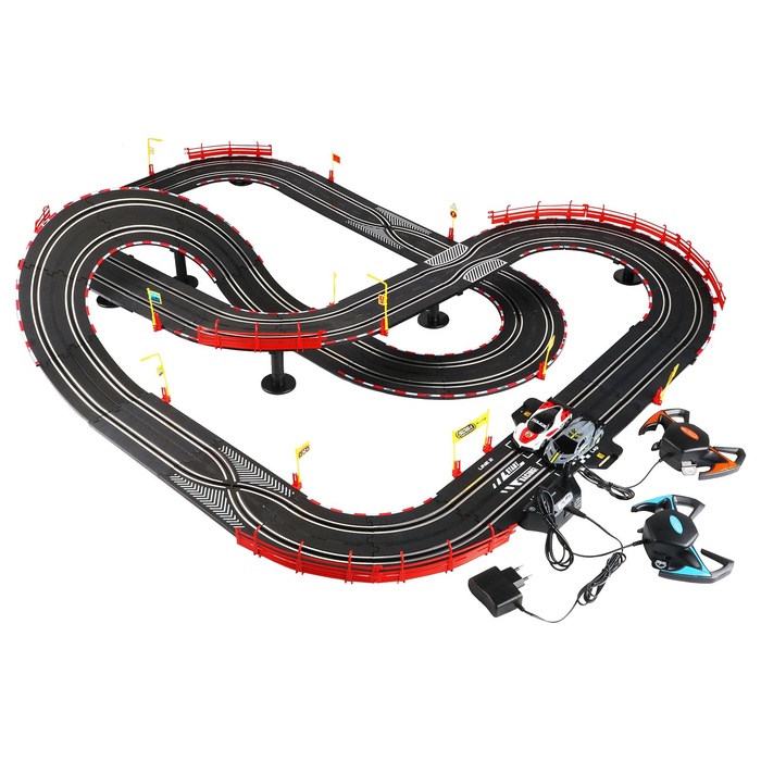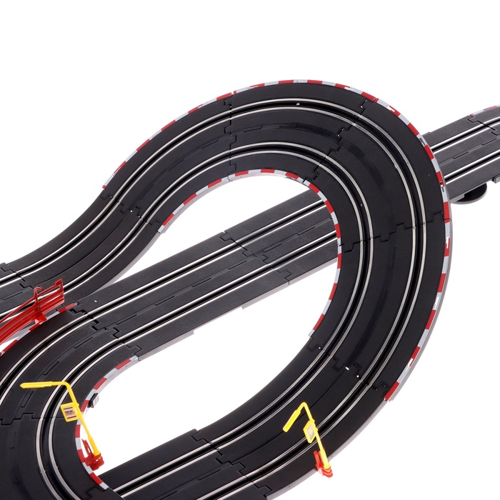 - В комплекте две машинки, обе с самоходным механизмом. Управляются с помощью контроллеров, которые подключаются напрямую к автотреку.