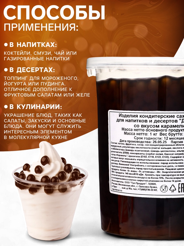 Идеальны для добавления в напитки, десерты и коктейли, включая популярный Bubble Tea.