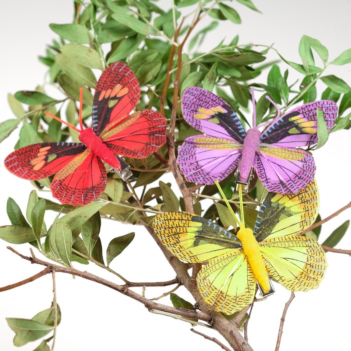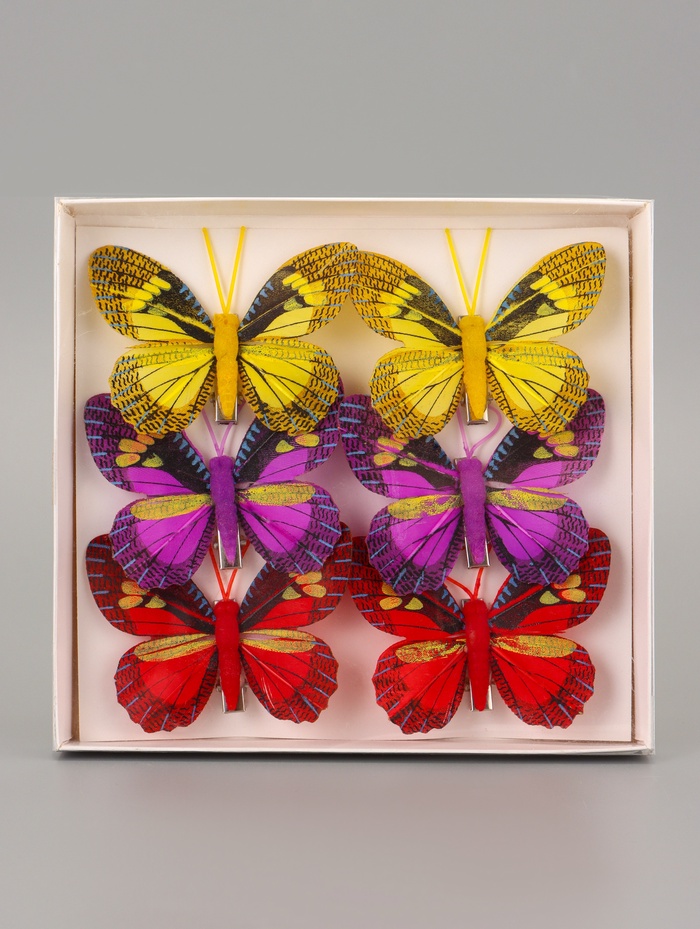 Лёгкое украшение для мгновенного преображения! Декоративная бабочка на прищепке — это пластиковый аксессуар для оформления интерьера, букетов и подарков. Прищепка даёт возможность закрепить бабочку на разных поверхностях без дополнительных инструментов.