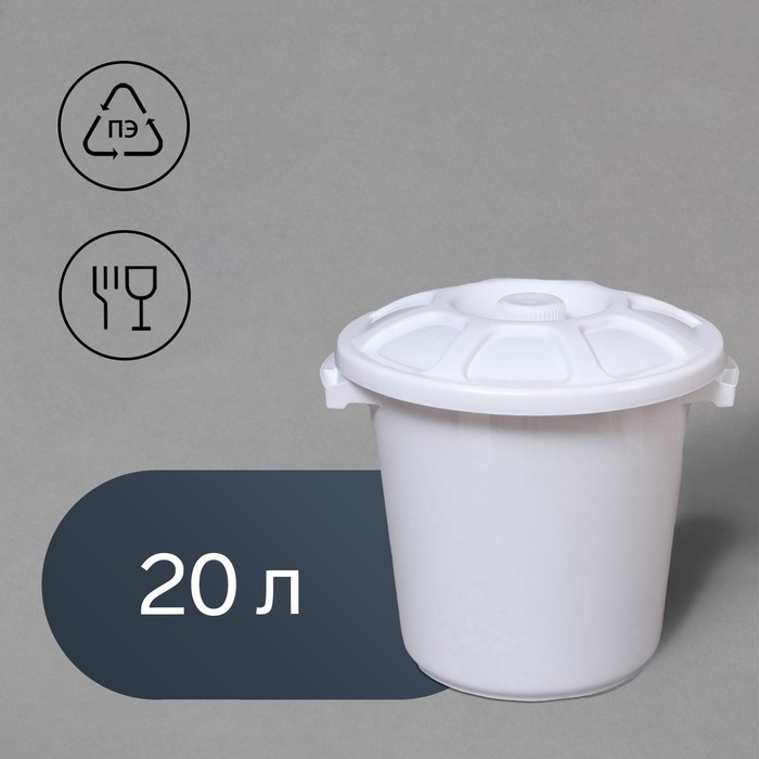 Пищевой пластиковый бак на 20 литров с крышкой — это универсальная ёмкость для хранения круп, муки, сахара и других сыпучих продуктов. Герметичная крышка защищает содержимое от влаги и посторонних запахов, сохраняя свежесть.