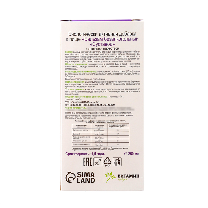 Бальзам безалкогольный «Суставод» на основе ГЛЮКОЗАМИНА и экстрактов лекарственных трав.