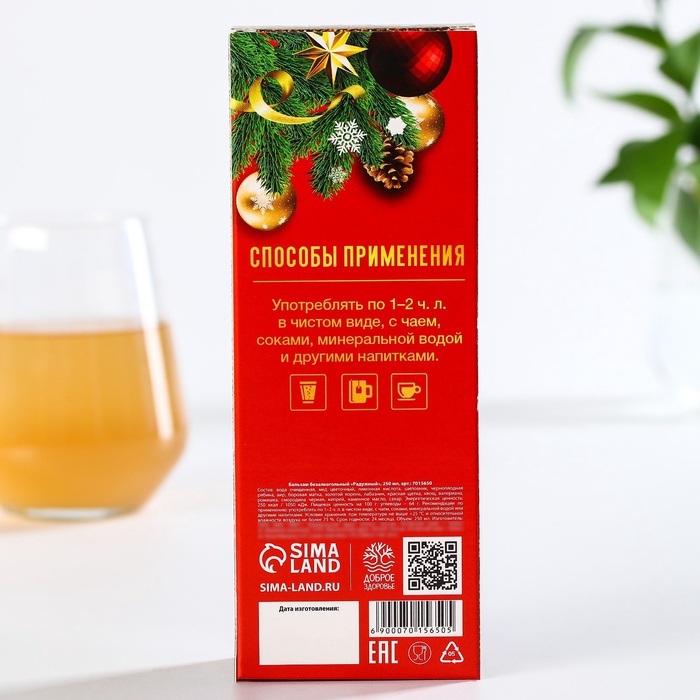 Состав: вода очищенная, мед цветочный, лимонная кислота, шиповник, черноплодная рябина, аир, боровая матка, золотой корень, лабазник, красная щетка, хвощ, валерьяна, ромашка, смородина черная, кипрей, каменное масло, сахар.