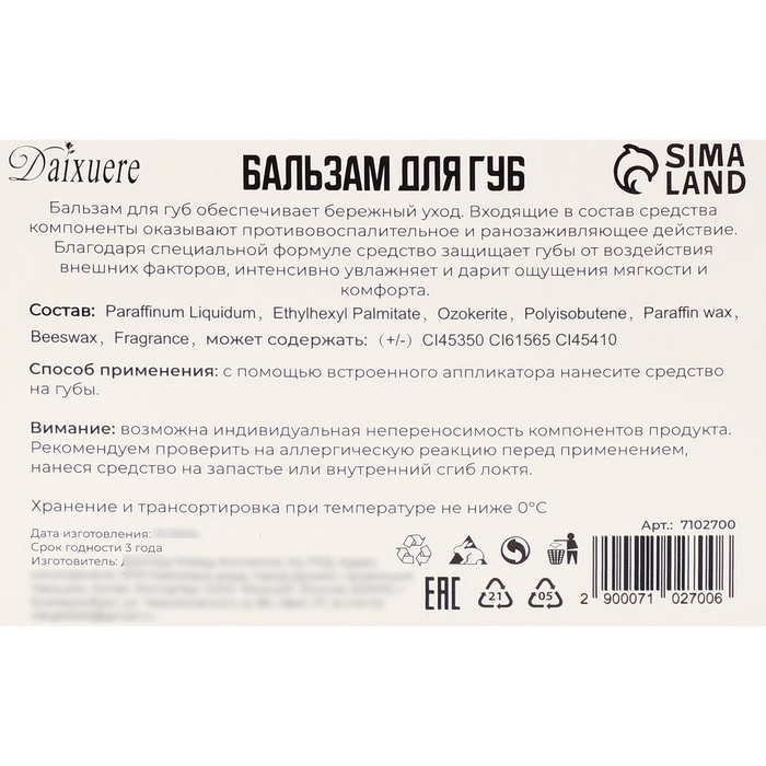 Благодаря специальной формуле средство защищает губы от воздействия внешних факторов, интенсивно увлажняет и дарит ощущения мягкости и комфорта.
