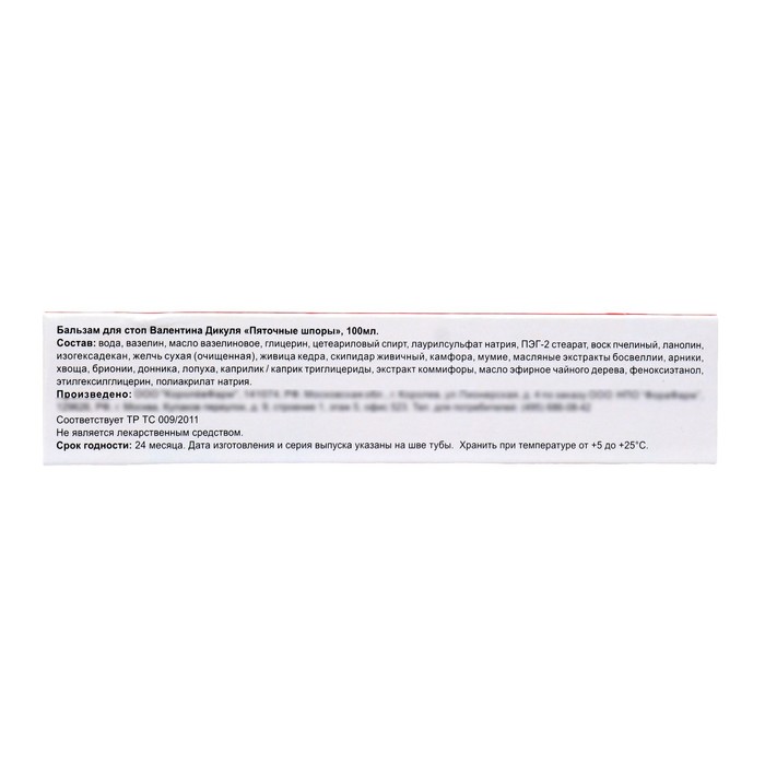 В.Дикуль Пяточные шпоры бальзам для стоп содержит в своем составе только натуральные компоненты
