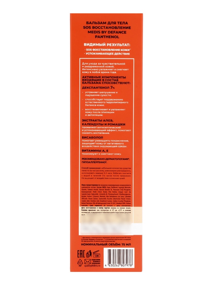 Бальзам для тела Medis by Defance, SOS быстрое восстановление с пантенолом 7 %, 75 мл