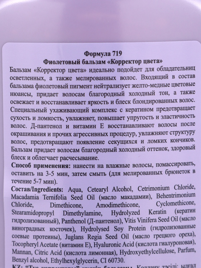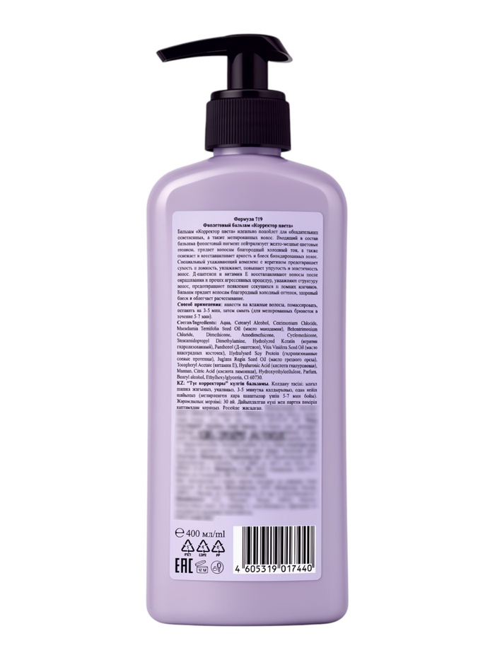 Бальзам сочетает коррекцию цвета с интенсивным уходом, делая волосы сияющими, мягкими и ухоженными.