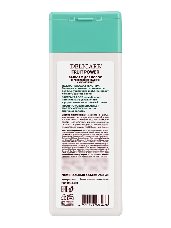 Бальзам‑маска для волос Delicare Fruit Power, глубокое очищение и увлажнение, с алоэ, 240 мл 1100360