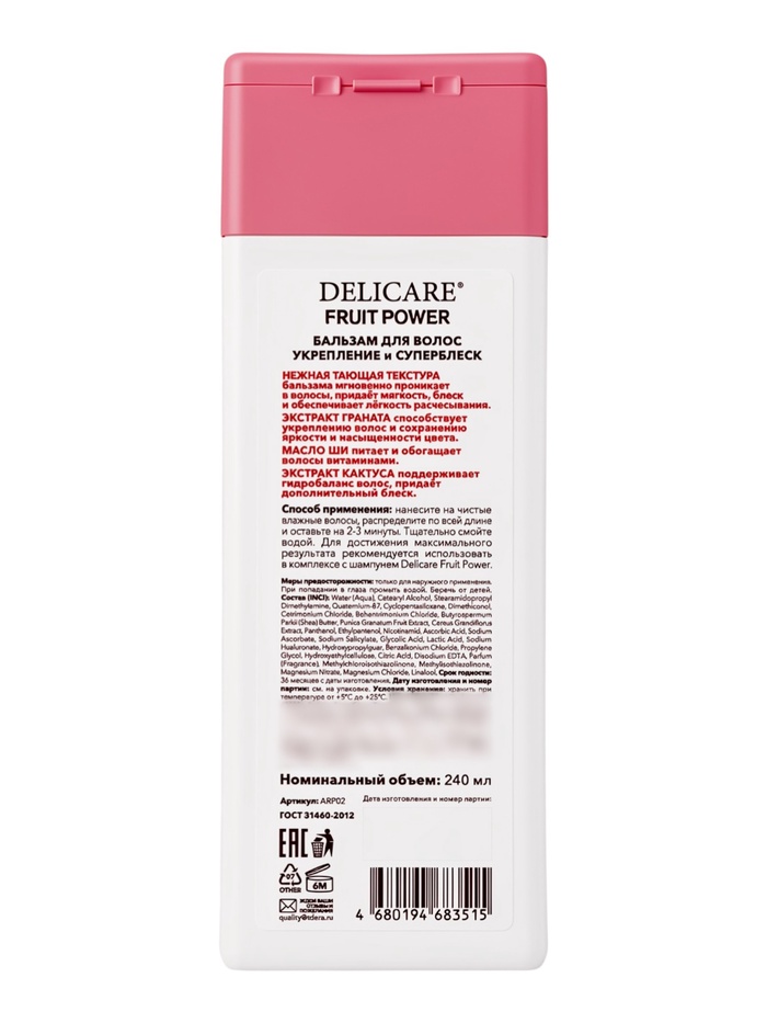 Бальзам‑маска для волос Delicare Fruit Power, укрепление и суперблеск, с гранатом, 240 мл