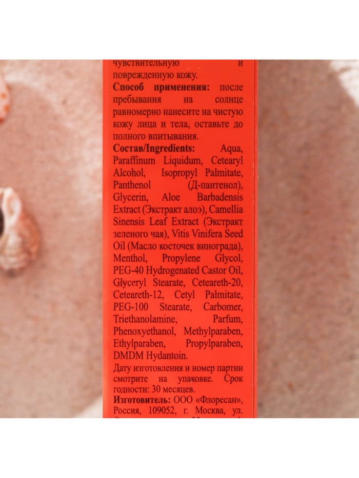 - Пантенол в составе способствует быстрому восстановлению кожи после загара.