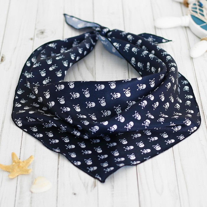 Бандана чёрная с черепами — универсальный аксессуар для любого гардероба. Изготовлена из прочного полиэстера, приятного на ощупь и долговечного в использовании. Бандана имеет стандартный размер 85 × 44 см, что позволяет носить её различными способами: на голове, на шее или на запястье.