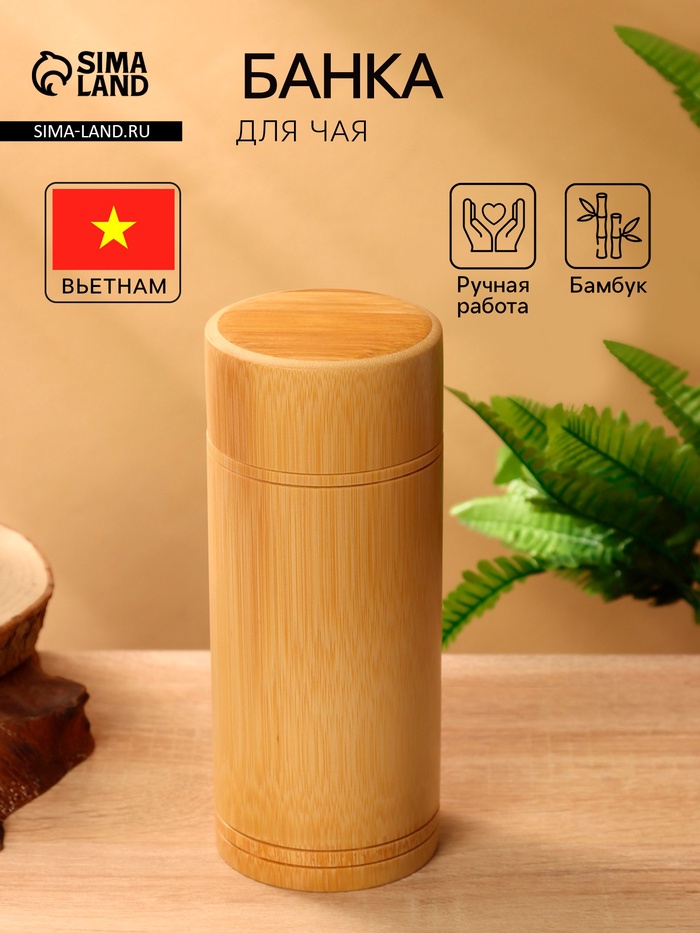 Эту ёмкость можно применять для хранения не только чая, но и кофе или любых других сыпучих продуктов. Бамбук — экологически чистый материал, который сохраняет пользу и аромат ваших ингредиентов. Простота дизайна и натуральная текстура делают этот предмет посуды универсальным и стильным элементом кухни.