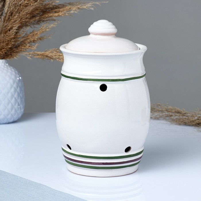 - Негерметичная крышка из керамики сохраняет естественную циркуляцию воздуха внутри.