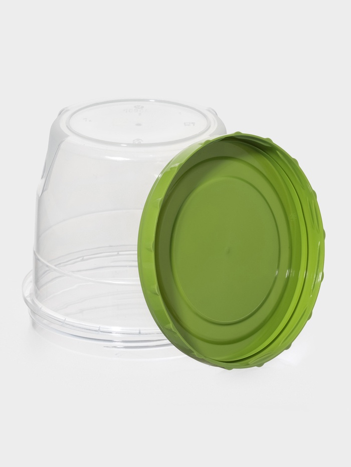 Банка для сыпучих продуктов изготовлена из пластика. Имеет плотно закрывающуюся крышку, которая защищает еду от влаги и посторонних запахов. В ёмкости удобно хранить крупы, специи, макаронные изделия, сахар, муку и бобовые.