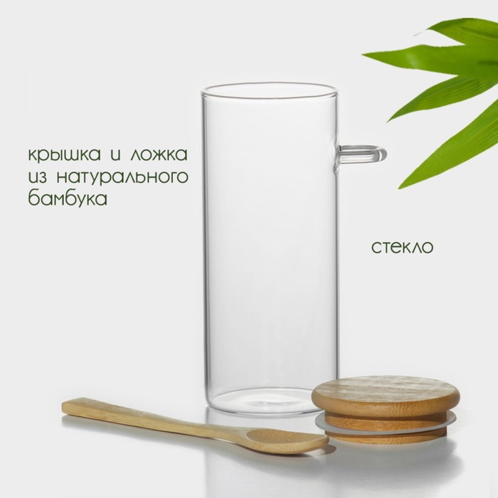 Банка для сыпучих BellaTenero «Эко», 420 мл, 6.7×15.5 см, с бамбуковой крышкой, с ложкой, стекло, прозрачная
