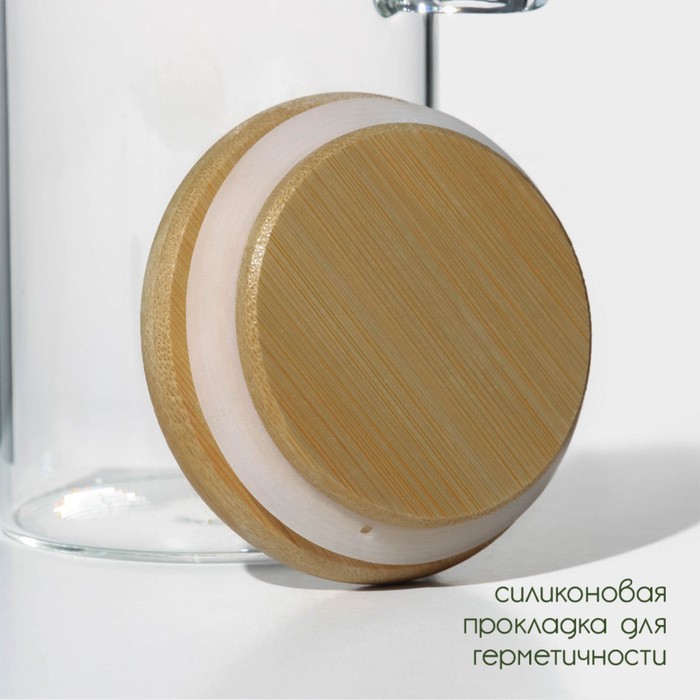 Банка стеклянная для сыпучих продуктов — она выполнена из качественного боросиликатного стекла, что гарантирует долговечность и безопасность использования. Крышка из бамбука обеспечивает надёжную защиту от влаги и посторонних запахов, сохраняя свежесть и качество ваших запасов. Благодаря стильному дизайну банка станет прекрасным дополнением к интерьеру вашей кухни и подчеркнёт его индивидуальность. А благодаря компактным размерам она не займёт много места на полке или столешнице.