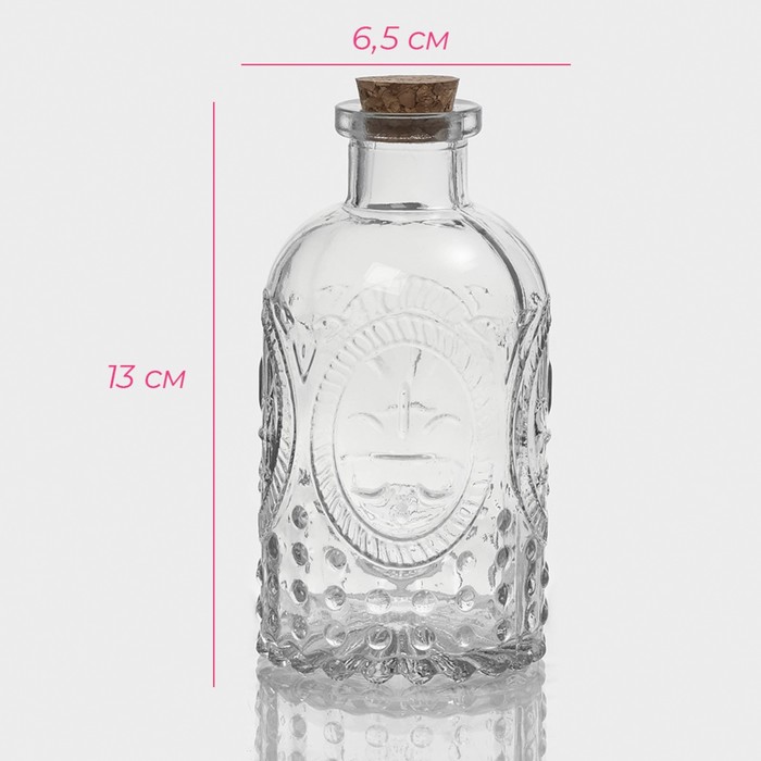 Банка для сыпучих Доляна «Парфе. Династия», 250 мл, 6.5×13 см, с пробковой крышкой, стекло, прозрачная