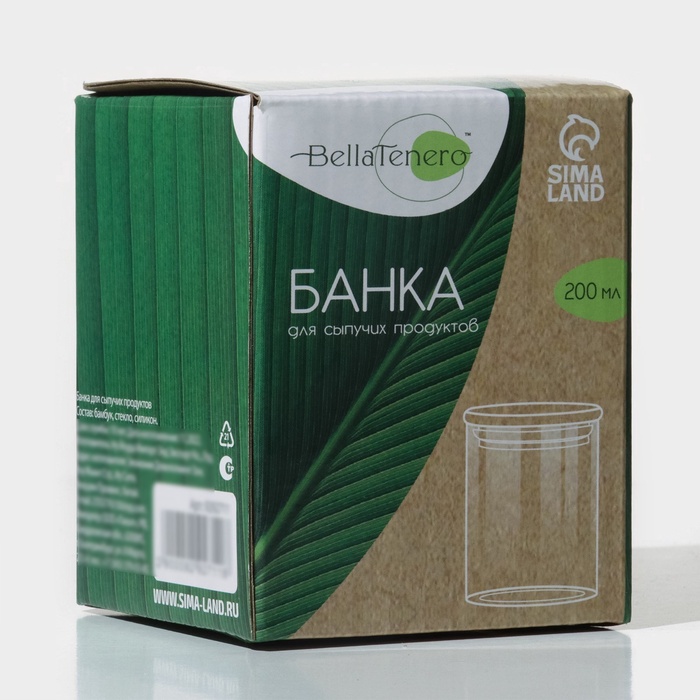 Банка для сыпучих продуктов BellaTenero «Эко», 200 мл, 6.5×8.5 см, с бамбуковой крышкой, стекло, прозрачная