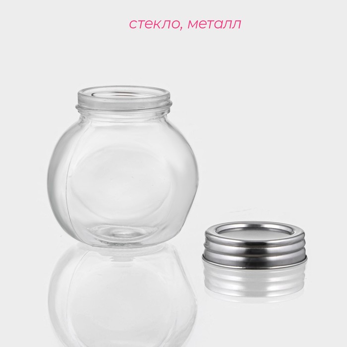 Банка стеклянная для хранения сыпучих продуктов Доляна «Классика», 200 мл, 8×6 см, с металлической крышкой