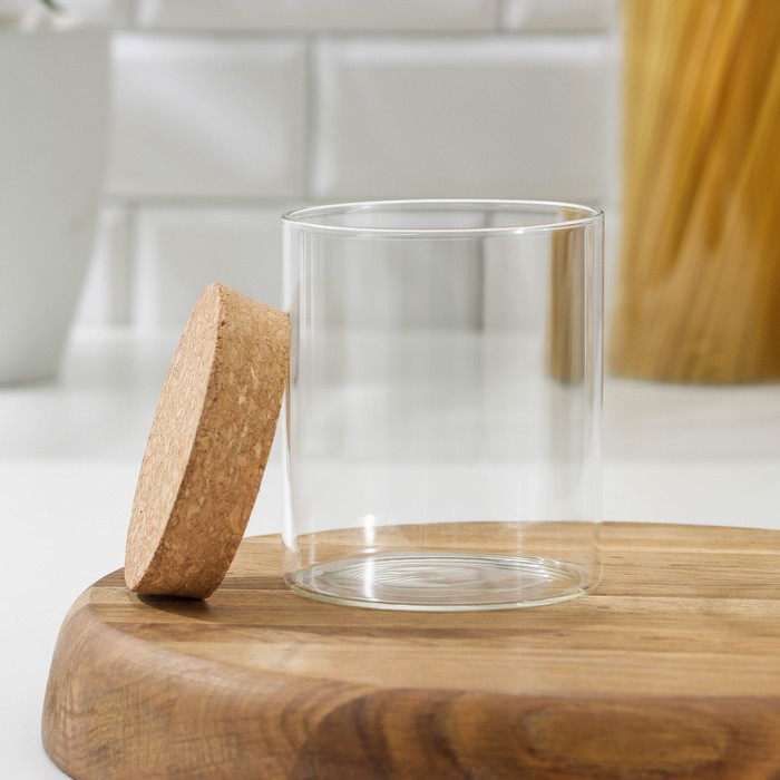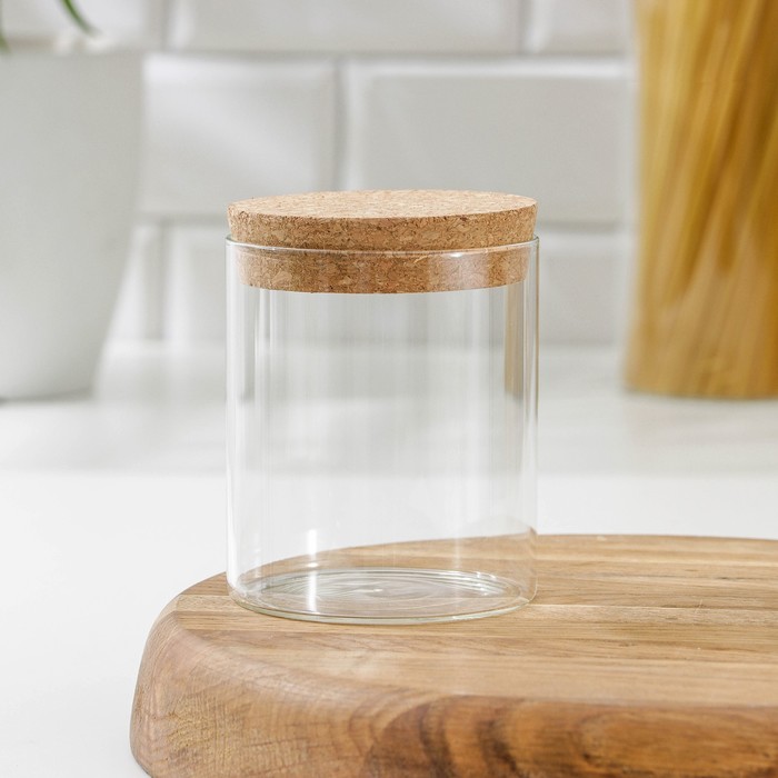 Баночка «Классика» идеально подойдёт для хранения круп, макарон, сахара и других сыпучих продуктов. Она подойдёт для любого интерьера, потому что имеет простой дизайн без рисунков. Баночка будет интересно смотреться на вашей кухне, т.к. имеет необычную круглую пробковую крышку. Изготовлена из экологичных материалов: стекла и пробки.