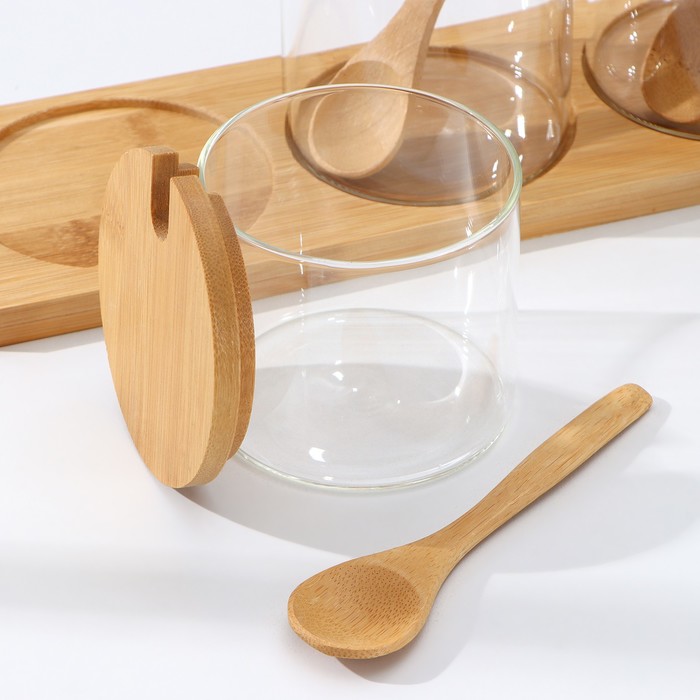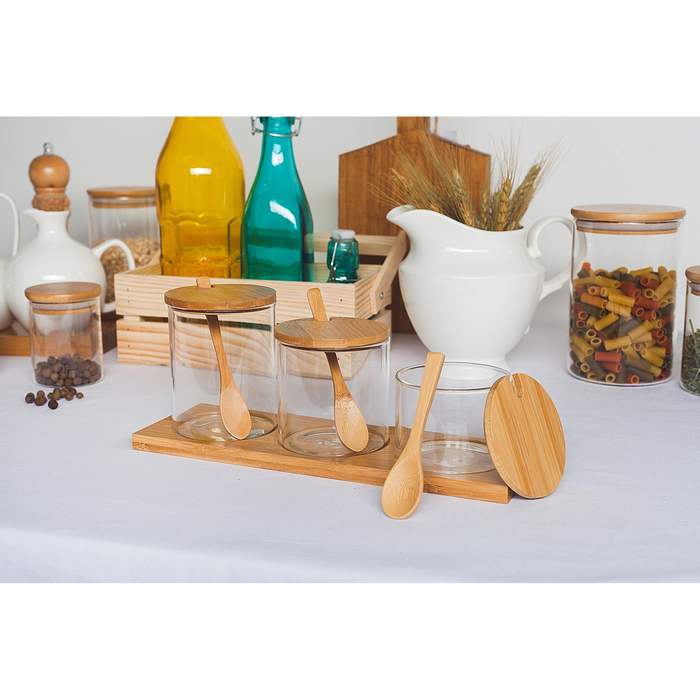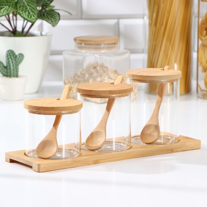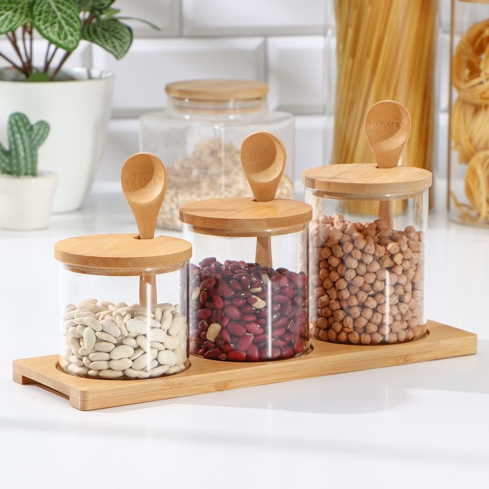 Банки стеклянные для хранения сыпучих продуктов Magistro «Эко», 3 предмета: 220/320/420 мл, с ложками