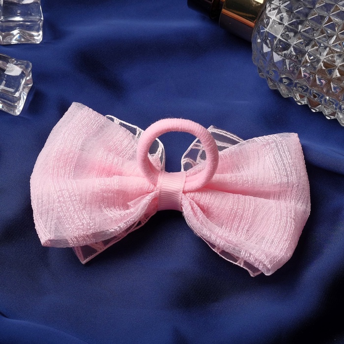 Бант для волос на резинке «Бантик», хрусталь полосы, 11 см, розовый