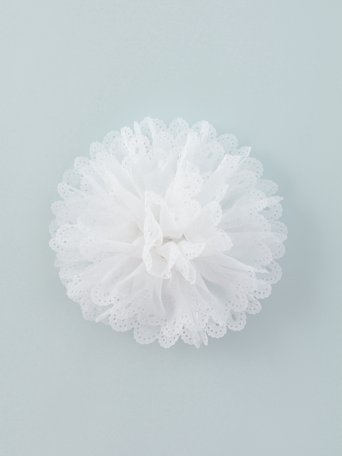 - Бант-шар с ажурным цветком добавляет изящества и завершенности образу.