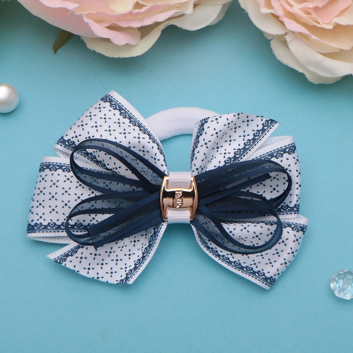 Элегантный аксессуар — школьный бантик — станет идеальным завершающим штрихом для девичьего образа. Этот бело-синий бантик сделает любую прическу яркой и выразительной, добавляя нотку игривости в повседневную школьную форму.
