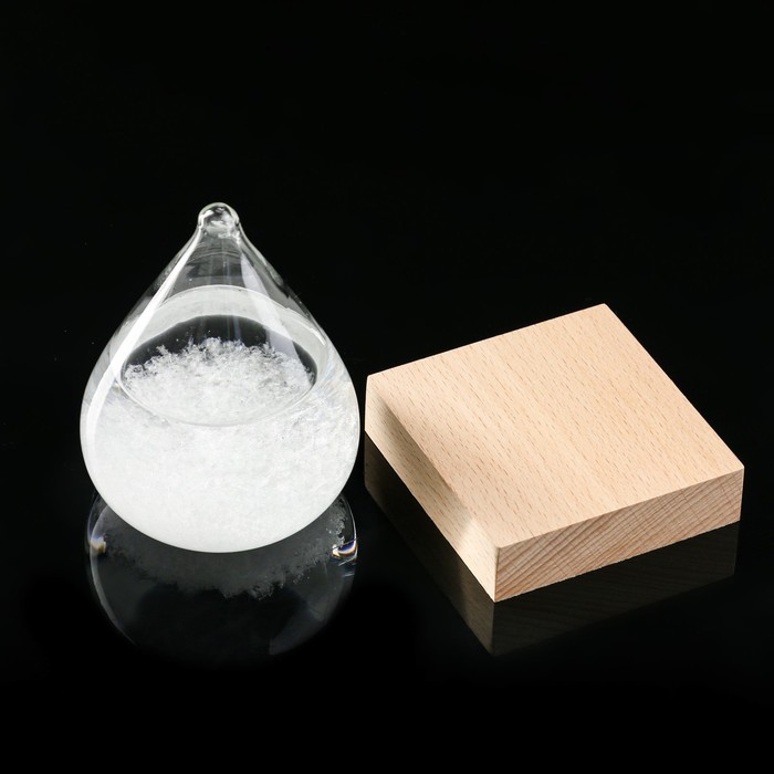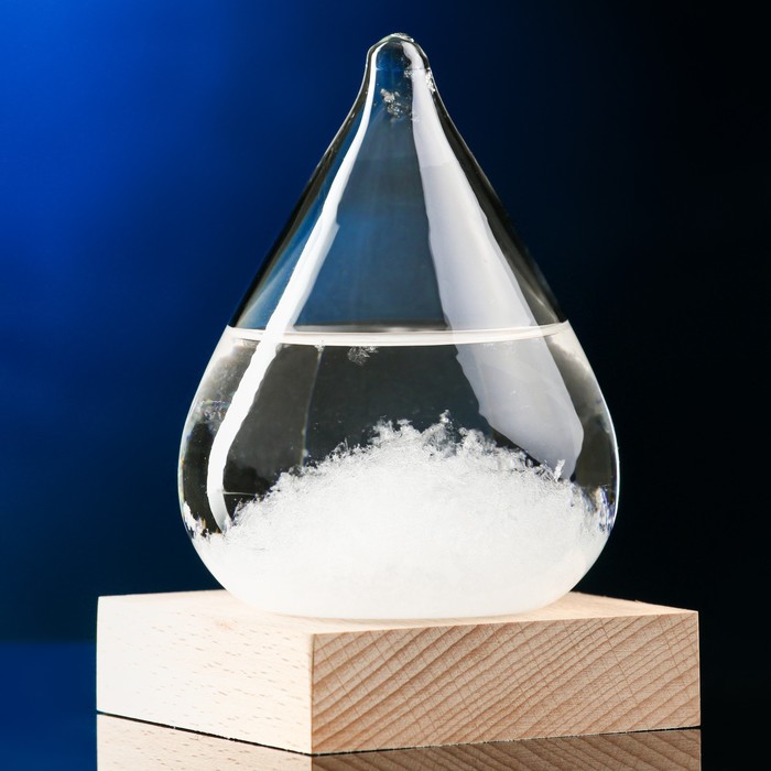 Штормгласс - это химический метеорологический прибор из стеклянной колбы, заполненной спиртовым раствором, в котором в определённых пропорциях растворены камфора, нашатырь и калийная селитра.