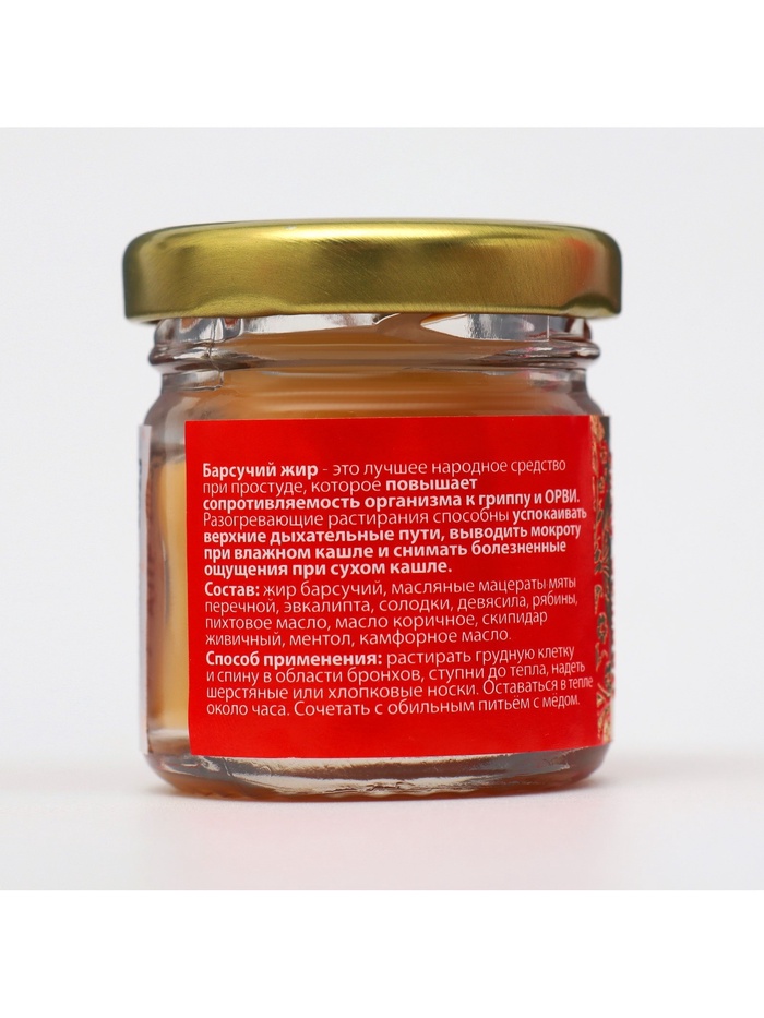 Барсучий жир - это лучшее народное средство при простуде, которое повышает сопротивляемость организма к гриппу и ОРВИ. Разогревающие растирания способны успокаивать верхние дыхательные пути, выводить мокроту при влажном кашле и снимать болезненные ощущения при сухом кашле.