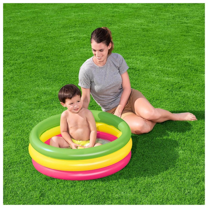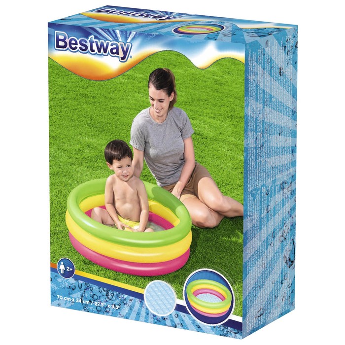 Лёгкий надувной бассейн быстро устанавливается на площадке. Наполните его, и ваша малышка будет купаться в нагретой солнцем воде в любое время. В конструкции сделано мягкое надувное дно. Бассейн с яркой расцветкой станет для крохи любимым местом для игр.