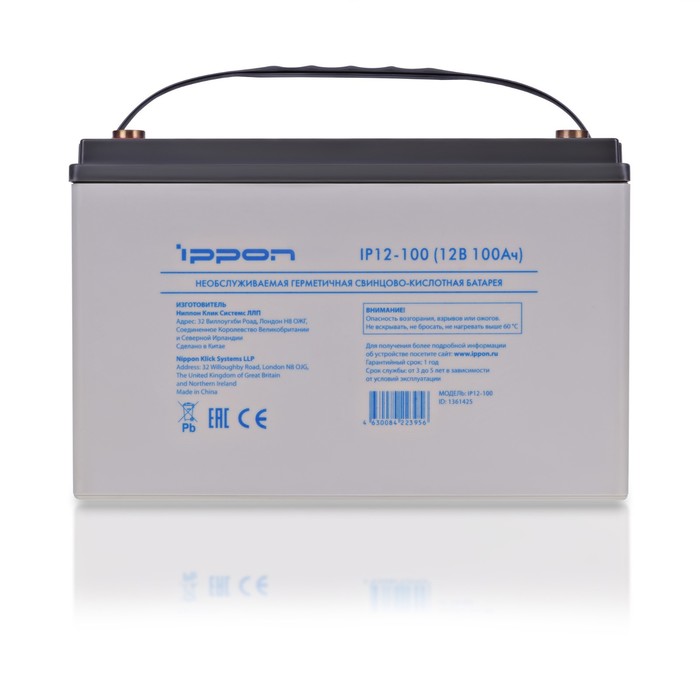 Батарея для ИБП Ippon IP12-100, 12 В, 100 Ач станет важной деталью при построении одной этих из составляющих и предоставит широкий выбор решений при оборудовании интегрированных систем.