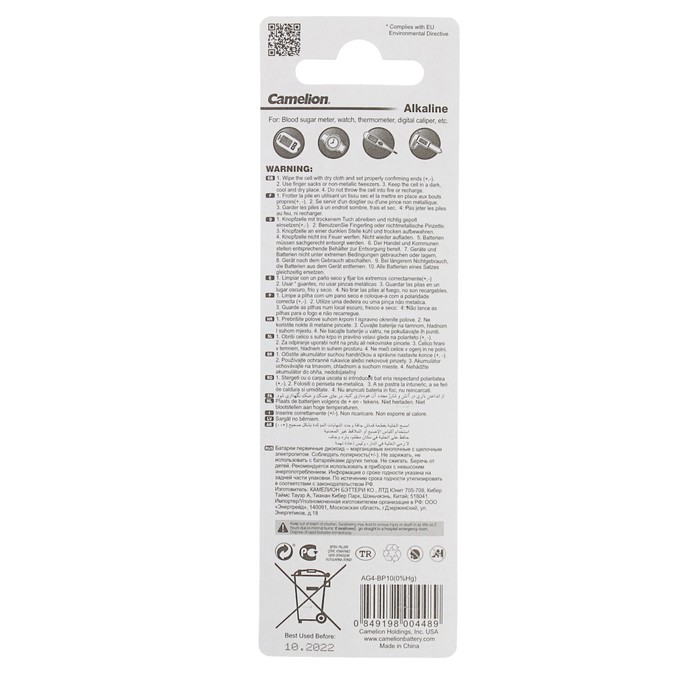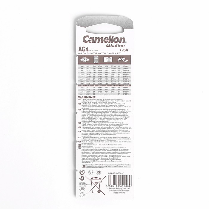 - LR — щелочная, 1,5 В.