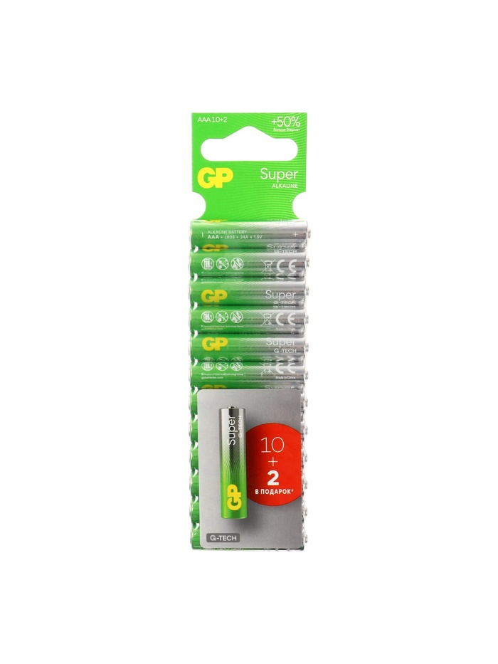 Батарейка алкалиновая GP Super, AAA, LR03-12BL, 1.5 В, блистер, 10+2 шт.
