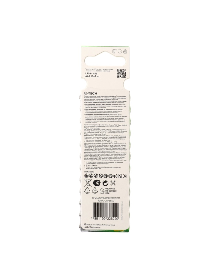 Новая линейка батареек GP Super Alkaline с технологией G-TECH, которая обеспечивает до 50%* больше мощности, позволяя вам наслаждаться использованием ваших устройств без перерывов. Технология G-TECH гарантирует длительное время службы ваших устройств. Благодаря использованию графита высокой чистоты и высококачественного порошка цинка S, батарейки обеспечивают высокую мощность и стабильное напряжение на протяжении продолжительного времени. Запатентованная система предотвращения протечек обеспечивает безопасность использования и защиту ваших устройств. Эти щелочные батарейки выделяются соотношением цены и качества и идеально подходят для повседневных устройств, таких как часы, пульты дистанционного управления и другие. Выберите батарейки GP Super Alkaline с технологией G-TECH для надежной работы ваших устройств.