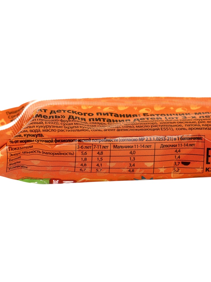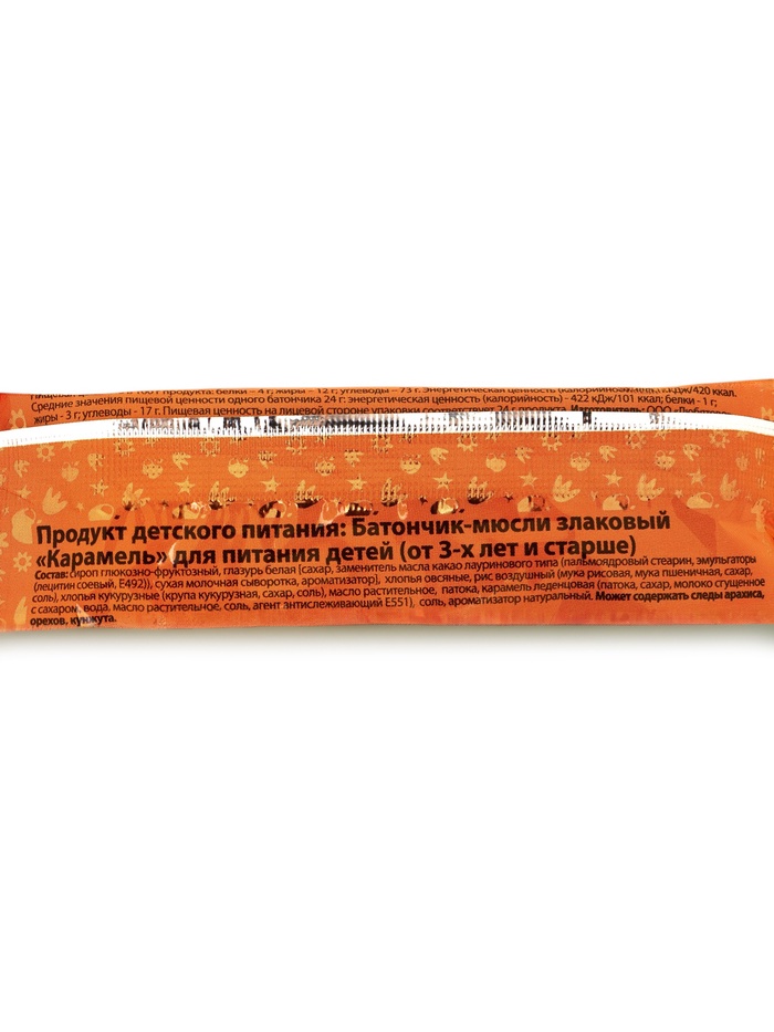 Злаковый батончик со вкусом банана. Вкусный и питательный перекус с большим содержание злаков. В составе овсяные и кукурузные хлопья, рисовые шарики. Продукт детского питания.